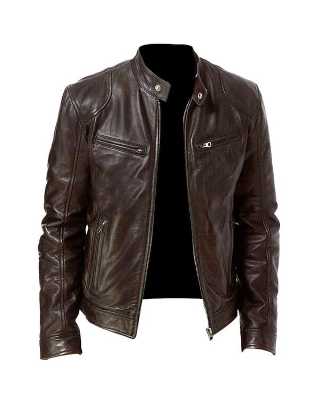Jaqueta masculina confeccionada em couro sintético de Alta Qualidade com forro interno em poliéster. Desenvolvida para uso casual, oferece proteção térmica e durabilidade para diferentes ocasiões.